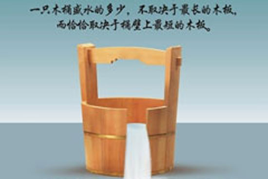 木桶原理又稱短板理論,木桶短板管理理論,所謂“木桶理論”也即“木桶定律”,其核心內容為:一只木桶盛水的多少,并不取決于桶壁上最高的那塊木塊,而恰恰取決于桶壁上最短的那塊。根據這一內容,可以有兩個推論:其一,只有桶壁上的所有木板都足夠高,那木桶才能盛滿水。其二,只要這個木桶里有一塊不夠高度,木桶里的水就不可能是滿的。