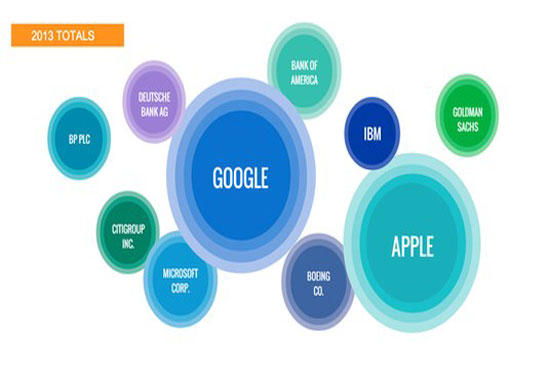 谷歌力壓蘋(píng)果成為2013年最受關(guān)注公司